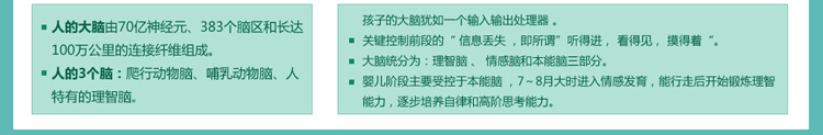 ※ 充分利用婴儿与生俱来的原始反射,促进大脑生长发育;同时有效抑制原始反射,建立姿势反射;